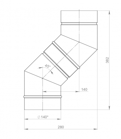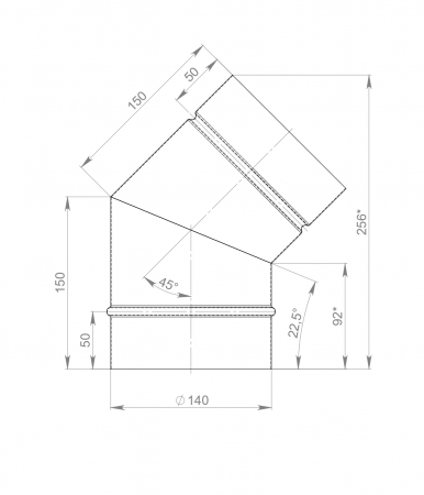 Колено дымоходное 45 градусов Ø 140 мм