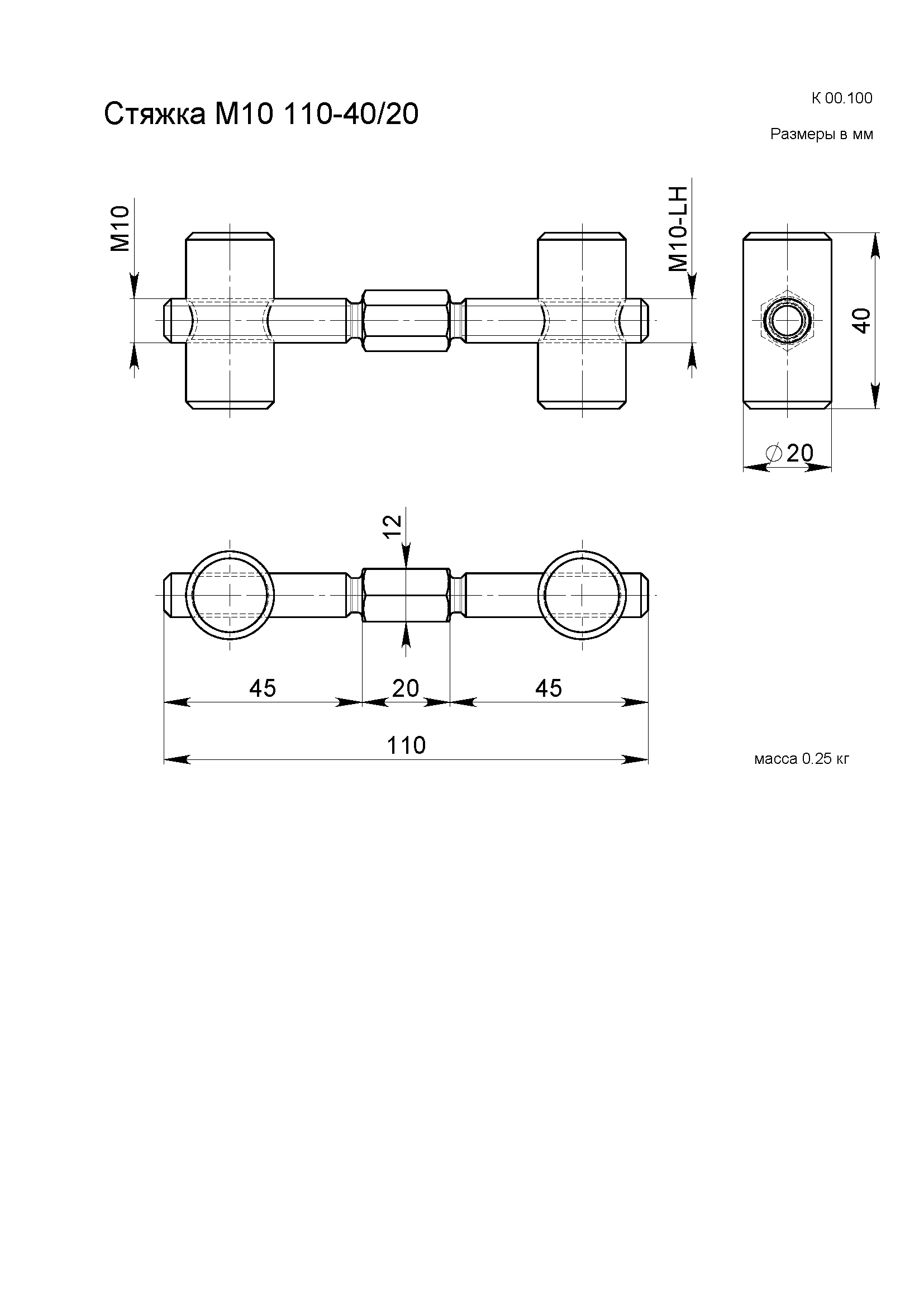 40 ммСтяжной механизм нержавеющий М10 для штрипса 40 мм. Резьба М10, диаметр бочонка 22 мм, высота 40 мм, шестигранник 12 мм