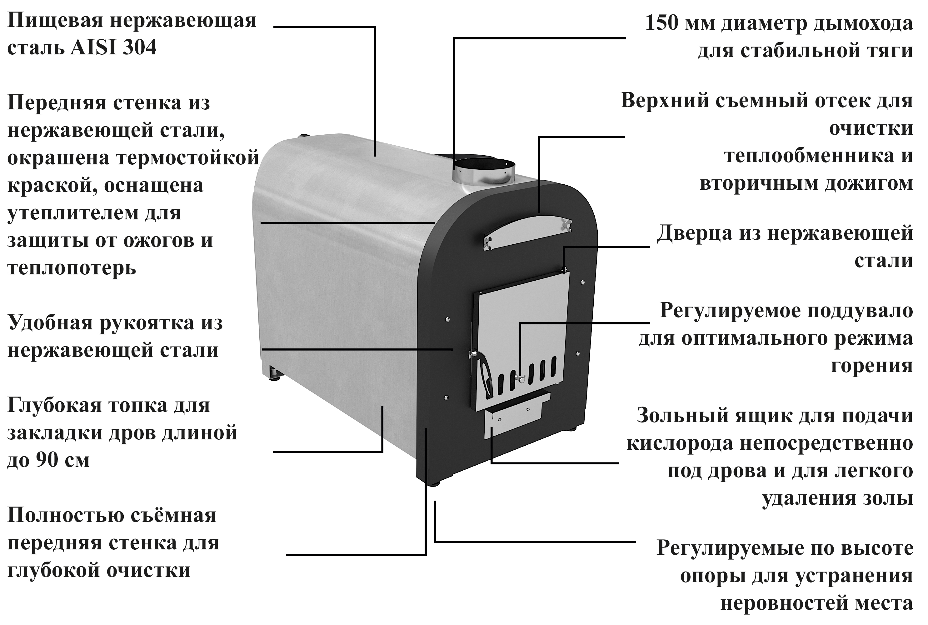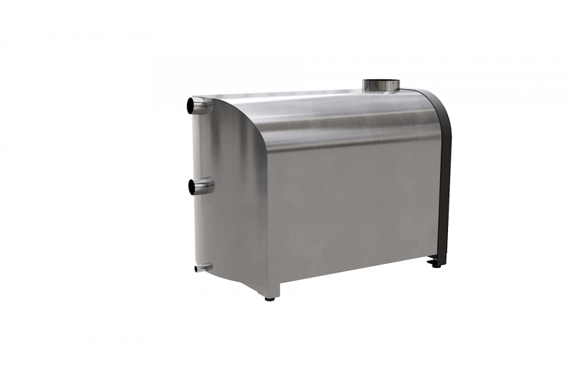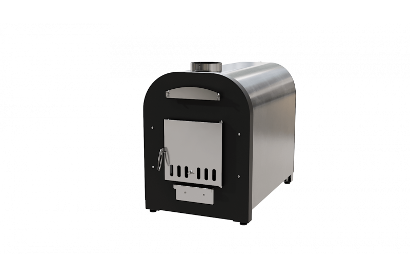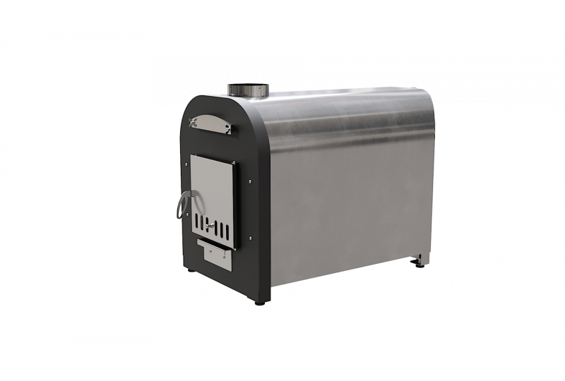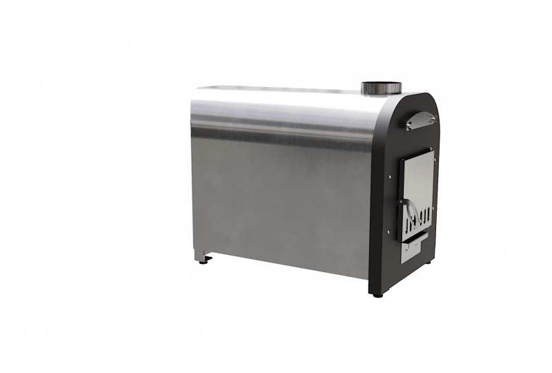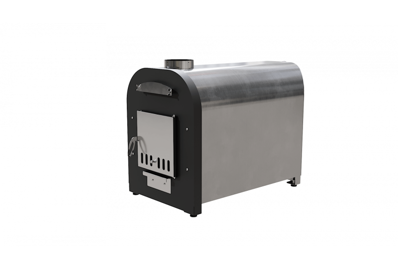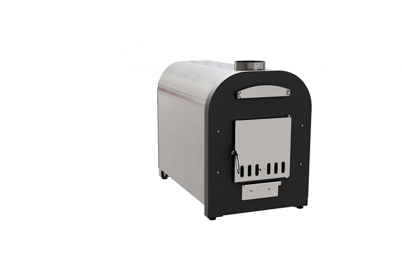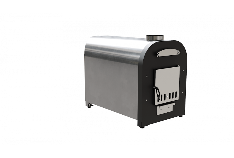 – внешний вид, удобство и практичность. Печь для купелей «Libespa» изготовлена с учетом высоких требований к внешнему виду и долговечности в условиях улицы. У наружной горизонтальной печи мощностью 70 кВт нержавеющий корпус отшлифован, передняя стенка окрашена антикоррозийной порошковой краской, внутри утеплена негорючей базальтовой ватой, во избежание ожогов и излишних тепловых нагрузок на материалы, утеплитель также дольше сохраняет тепло и повышает КПД печи, дверца окрашена термостойкой краской и снаружи оснащена нержавеющей зеркальной поверхности декоративной накладкой. Благодаря нержавеющей накладке печь на протяжении долгих лет сохраняет свои первоначальные внешние качества. Рукоятка открытия дверцы выполнена из нержавеющей стали и благодаря размеру и форме удобно «сидит» в руке. Наружная горизонтальная печь для купели мощностью 70 кВт оснащена зольным ящиком, при помощи которого легко удалять золу, а также, приоткрыв зольный ящик кислород поступает непосредственно под колосниковую решетку, что повышает эффективность горения. Над дверцей расположен технологический лючок, открутив который можно произвести очистку внутренних элементов теплообмена, что позволит эксплуатировать печь со стабильным КПД. Колосниковая решетка выполнена из нержавеющей стали, что гарантирует долговечность изделия;
