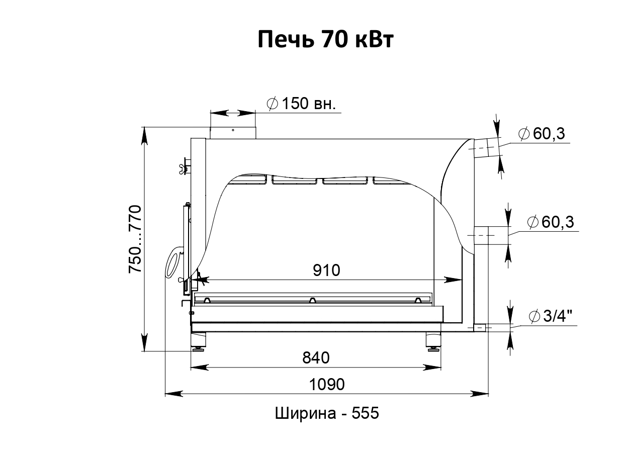 Основные преимущества наружной горизонтальной печи «Libespa» мощностью 70 кВт: