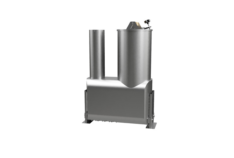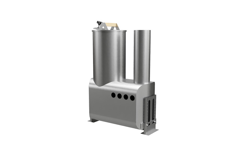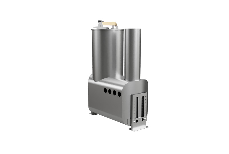 Горловина топочного отделения имеет полностью круглую форму и сплющенный на краях металл, что увеличивает прочностью данной, наиболее уязвимой части печи к деформации, во время топки, вдвое за счет увеличения толщины стенки в два раза, а поскольку стенка увеличена только на самом верху горловины, то данный факт отрицательно не сказывается на КПД, а также данная часть печи имеет безопасную поверхность, об которую нельзя порезаться. Крышка печи в отличии от стандартной серии погружных печей имеет также круглую форму с отбортовкой, благодаря которой крышка легко и надежно лежит на топочном отделении. Круглая форма с отбортовкой и внутренним загибом, который входит в поддувало, гарантирует необходимую жесткость, чтобы крышка не деформировалась даже при максимальных нагрузках. Поддув воздуха в топку, осуществляется через лючок на самой крышке, который оснащен удобной рукояткой и данный лючок открывается под углом, что не даст воде в виде дождя попасть в топку во время процесса работы печи и абсолютно легко позволяет регулировать необходимое количество подачи воздуха.